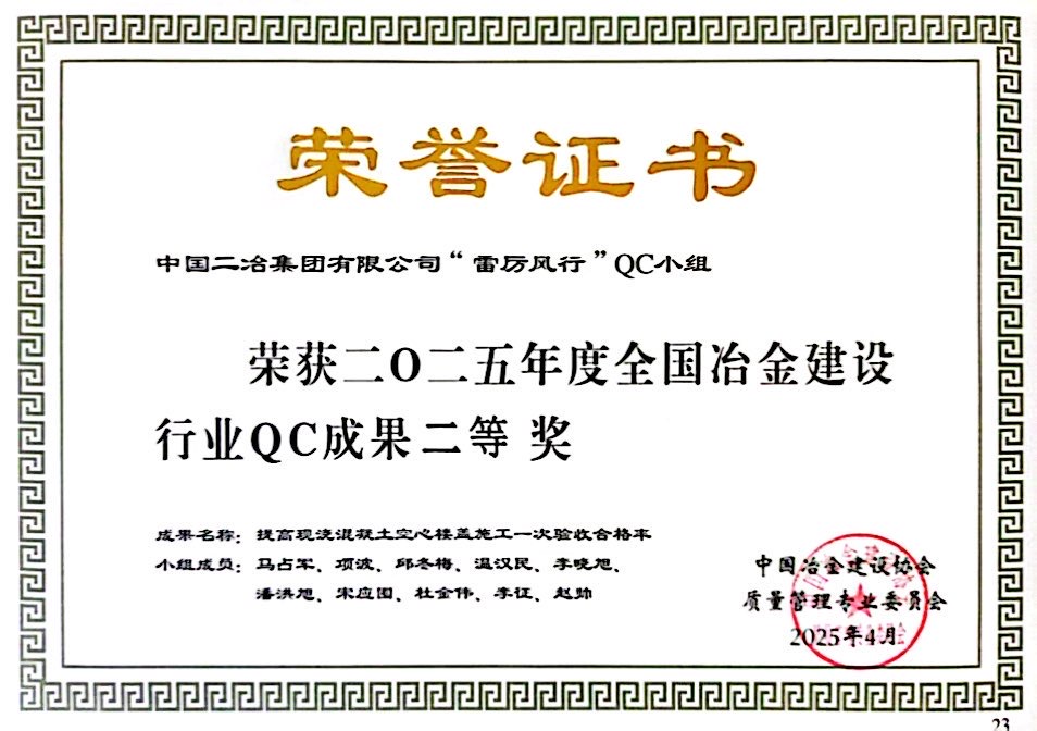 在2025年度全國冶金建設(shè)行業(yè)質(zhì)量管理(QC)成果評選活動(dòng)中,市政分公司《提高現(xiàn)澆混凝土空心樓蓋施工一次合格率》和《提高鋼管混凝土一次澆筑合格率》兩項(xiàng)成果,榮獲二等獎(jiǎng)。這一榮譽(yù)不僅彰顯了分公司在技術(shù)創(chuàng)新與質(zhì)量管理方面的卓越實(shí)力,更為冶金行業(yè)綠色智能建造提供了可借鑒的實(shí)踐經(jīng)驗(yàn)。