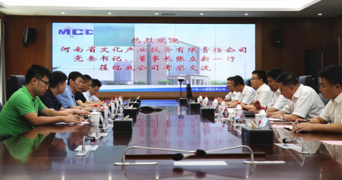 河南省文化產業投資有限責任公司黨委委員、副總經理張曉鵬 ,戰略投資部主任古誠,河南省中視新科文化產業有限公司總經理夏飛, 杭州懷樸投資管理有限公司投資經理焦楊;中國二冶副總經理劉寶世,總會計師范大鵬,市場營銷總部國內市場部部長武樹軍,中原分公司總經理趙景剛 、總經理助理武寧陪同會見。