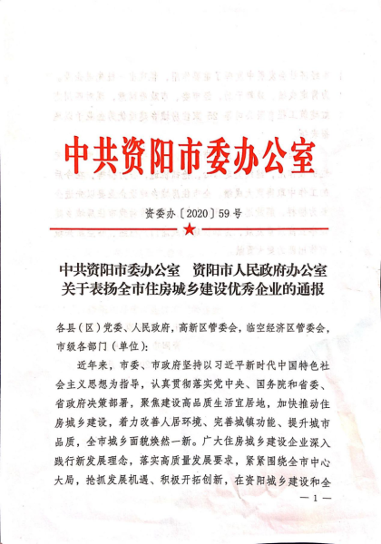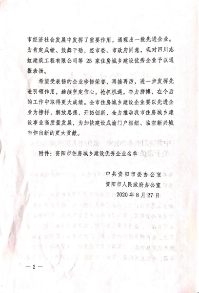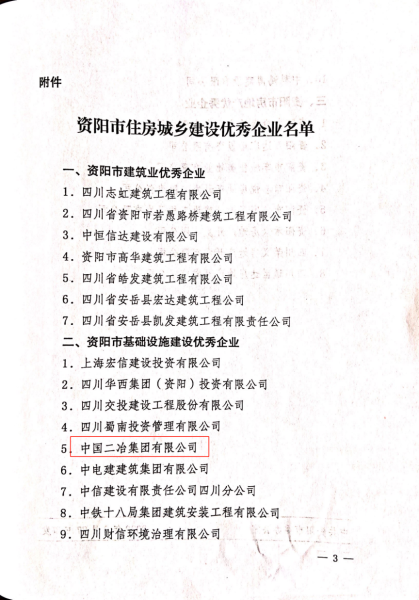 8月28日上午,四川省資陽市委組織召開資陽市城鄉建設工作會議,中國二冶被授予“資陽市基礎設施建設優秀企業”稱號。