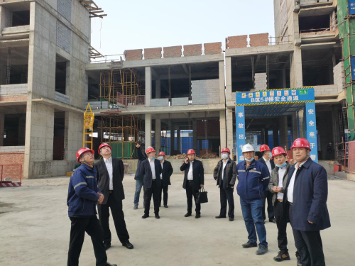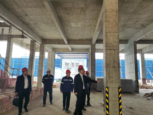 徐永鋒一行首先深入施工現(xiàn)場,了解了現(xiàn)場的工程進度、安全文明施工、質(zhì)量把控、人員到位等情況。在聽取了關于項目進度管理、質(zhì)量管控、標準化建設、疫情防控等主要工作的匯報后,徐永鋒對項目部現(xiàn)場施工管理給予了充分肯定,對現(xiàn)場塔式起重機、施工升降機等機械設備的租賃、管理措施等進行了詳細了解,并提出了相關管理建議。