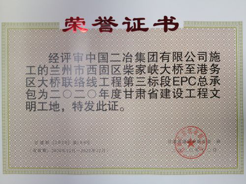 2月3日,在甘肅省建筑業(yè)聯(lián)合會(huì)公布的2020年度甘肅省建設(shè)工程文明工地評(píng)選結(jié)果中獲悉,中國(guó)二冶蘭州市柴家峽黃河大橋工程榮獲“2020年度甘肅省級(jí)建設(shè)工程文明工地”榮譽(yù)稱(chēng)號(hào)。