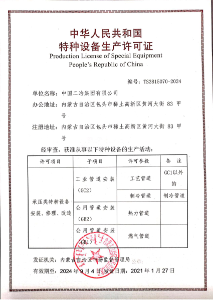 2月2日,經內蒙古自治區質量技術監督局評審與檢查,中國二冶順利完成壓力管道安裝維修GB1、GB2、GC2資質換證工作。
