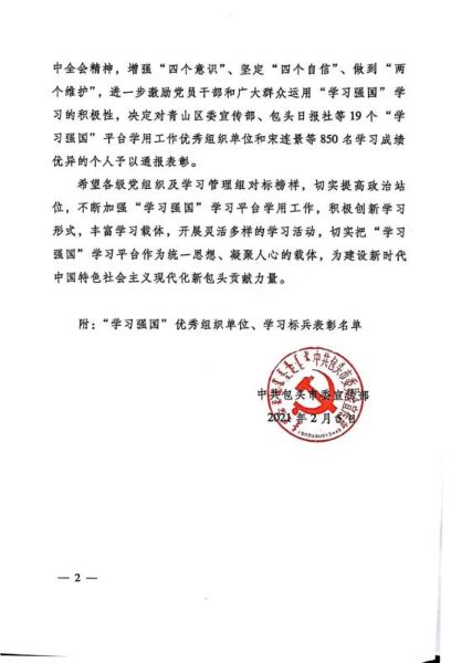 近日,包頭市委宣傳部印發(fā)了《關(guān)于表彰2020年度“學(xué)習(xí)強國”學(xué)用工作優(yōu)秀組織單位、學(xué)習(xí)標(biāo)兵的決定》,中國二冶張明磊、劉慶廣、楊振福、常龍、尚書一、趙春來、張慶、武雨薇、王萬銀、陳志剛等10名同志學(xué)習(xí)成績優(yōu)異,被授予“包頭市委2020年度‘學(xué)習(xí)強國’學(xué)習(xí)標(biāo)兵”榮譽稱號。