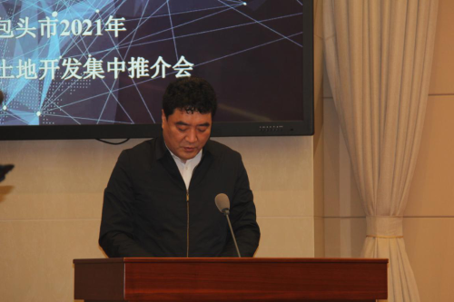 包頭市自然資源局局長李蘭維、新都市區建設協調指揮部辦公室主任孫義、北梁現場指揮部副總指揮李曉宏、市土地儲備中心副主任賈瑞彤分別對包頭市營商條件、新都市區、北梁騰空區及有關地塊作專項推介。會前全體人員共同觀看了包頭市城市宣傳片。