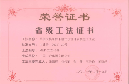 近日,中國二冶八項工法被內蒙古建筑業協會評為省部級工法,公司工法成果數量再創新高。