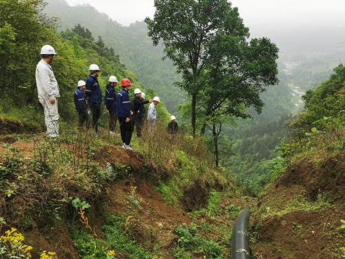 在辦實事、開新局環節,全體參建人員在《踐行遵義會議精神 建設人民滿意工程》的條幅上簽名,承諾以實事求是、民主團結的遵義會議精神為引領,充分發揚‘一天也不耽誤,一天也不懈怠’ 的企業精神,以高度的責任感和使命感踐行央企責任擔當,履行光榮使命。中國二冶技術人員帶領甲方業主、媒體朋友參觀縣縣通天然氣管道建設項目在建分部。該項目總長為187.25公里,項目建設內容包括臺盤至劍河天然氣管道;鎮遠至羊滿哨天然氣管道;羊滿哨至天柱天然氣管道;凱里至黃平天然氣管道 ;凱里至雷山天然氣管道。同時還包括施秉輸氣站、鎮遠輸氣站、羊滿哨輸氣站、天柱輸氣站等9座輸氣站和爐山閥室、瓦寨閥室、桐林閥室、款場閥室、西江閥室等5座閥室及所需附屬設施。該項目負責人馬艷偉介紹到:“該項目途經貴州省多個縣及古城,地勢險峻,多為森林和陡坡,管道敷設要在懸崖和峭壁上開展,中國二冶建設者們以‘遵義會議精神’為引領,攻克一個個難關,使項目建設取得了突破性進展,長輸管道的安裝成功,切實優化了貴州省能源供給,為促進地方經濟社會發展起到了強有力的推動作用。”
