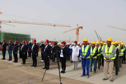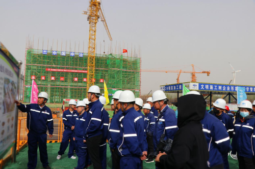 在學黨史、悟思想環節中,項目部黨支部書記帶領參與人員共同回顧黨的歷史,通過視頻、黨課多角度解讀“抗戰精神”,通過學習,參與人員抒發感想,紛紛表達了自己踐行“抗戰精神”的信心和決心;在黨旗下重溫入黨誓詞,堅定作為一名共產黨員的理想信念;中國二冶黨群工作部部長王延祥、城建分公司紀委書記、總工程師劉潤明向黨員突擊隊和青年突擊隊授旗,突擊隊代表表達了“堅決聽從黨指揮,施工一線淬初心。黨旗所指,團旗所向”的決心;在全體職工簽名的請戰書中,立下了“踐行抗戰精神,助推項目生產建設,持續為包頭地區高質量發展踐行央企責任”的錚錚誓言;齊唱紅歌《團結就是力量》,以嘹亮的歌聲展示中國二冶建設者們的精神風貌;充分發揚“一天也不耽誤,一天也不懈怠”的企業精神,建設人民滿意工程,更加緊密地團結在黨中央周圍,以扎實的腳印丈量夢想的距離,用勤勞的雙手創造屬于國家、人民和中華民族的光明未來。