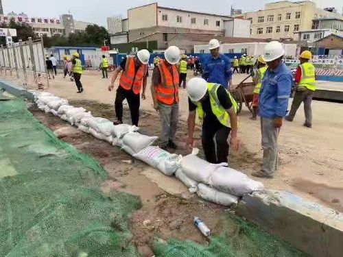 鶴壁開發(fā)區(qū)全域城市化建設(shè)項目部對施工現(xiàn)場生活區(qū)、辦公區(qū)和施工區(qū)進(jìn)行檢查,確保排水系統(tǒng)通暢。由于施工現(xiàn)場107國道積水嚴(yán)重,為有效防范積水倒灌在建項目基坑工程,項目部準(zhǔn)備了必備的排水機具、雨衣雨靴、編織袋和救生衣等防汛物資,組織全體管理人員在路基處設(shè)置排水溝,組織人力、物力和施工機械全力排除基坑中的積水。同時,持續(xù)24小時連續(xù)作業(yè),用沙袋在國道處搭筑起防洪墻,確保在建工程安全度汛。
