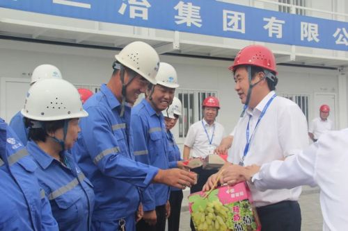 高文華首先對工作在一線員工們的辛勤工作表示感謝和崇高的敬意,聽取了項目負責人的工作匯報,并與大家親切交談,詳細了解員工們的工作生活情況,鼓勵所有員工,增強集體榮譽感和責任心,用奮斗譜寫二冶建設新篇章,并為他們發放了月餅、水果等節日禮物,勉勵他們要不忘初心、牢記使命、勇擔重任。高文華指出,在中秋和國慶“兩節”來臨之際,公司許多員工依然堅守工作崗位勤懇奉獻,正是“一天也不耽誤,一天也不懈怠”的企業精神,中國二冶才跑出了發展的“加速度”,公司對廣大員工及其家屬的辛勤付出與大力支持表示衷心感謝。