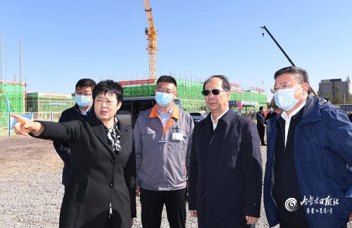 石泰峰走進大地熊建設工地施工現場,映入眼簾的就是如火如荼的建設場景,一棟棟廠房拔地而起,象征著包頭的經濟也將迎來騰飛。