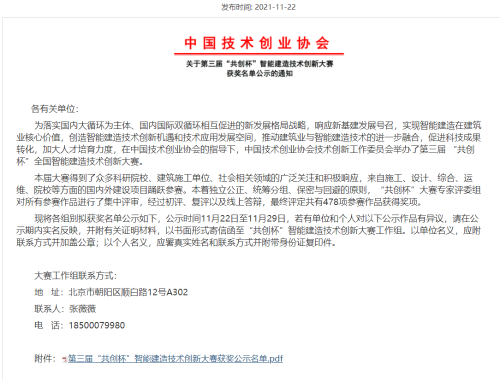 本屆大賽由中國技術創業協會指導,中國技術創業協會技術創新工作委員會主辦,旨在落實國內大循環為主體、國內國際雙循環相互促進的新發展格局戰略,構建響應新基建發展號召,實現智能建造在建筑業核心價值,創造智能建造技術創新機遇和技術應用發展空間,推動建筑業與智能建造技術的進一步融合,促進科技成果轉化,加大人才培養力度。大賽劃分為施工、設計、綜合、運維、院校等五個組別進行比賽,得到了包括清華大學、上海交通大學、天津大學、南開大學、中國建筑、中鐵建工集團、中國交建等眾多科研院校與企業的積極響應和參賽。