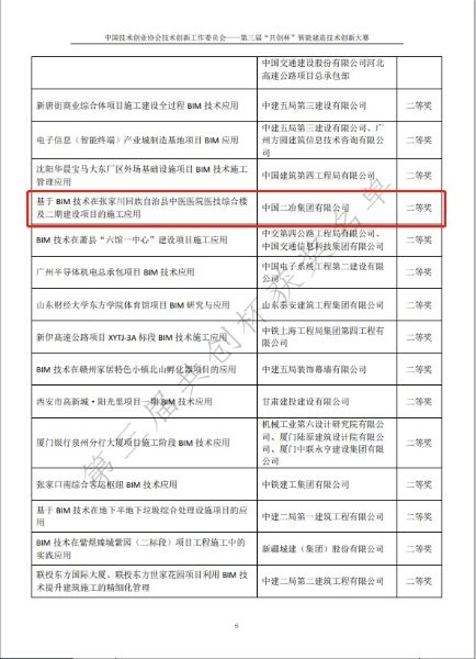11月30日,由中國技術創業協會技術創新委員會主辦的第三屆“共創杯”智能建造技術創新大賽比賽結果揭曉,中國二冶集團“蘭州新區瑞嶺御景苑項目的BIM技術應用”榮獲施工組一等獎,“基于BIM技術在張家川回族自治縣中醫醫院醫技綜合樓及二期建設項目的施工應用”作品榮獲施工組二等獎。