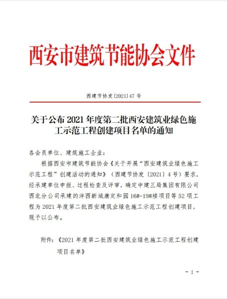 12月30日,由中國二冶承建的中譽華庭項目榮獲“2021年度第二批西安建筑業綠色施工示范工程”稱號。