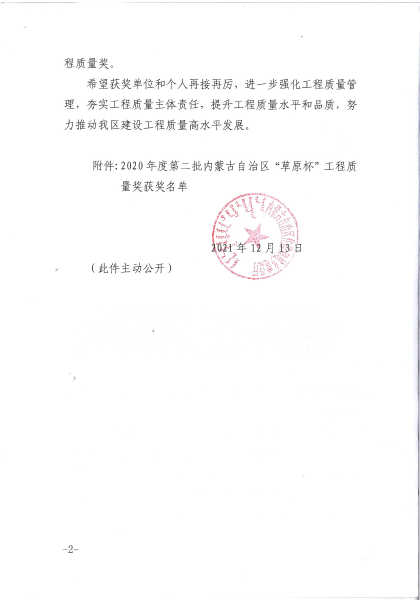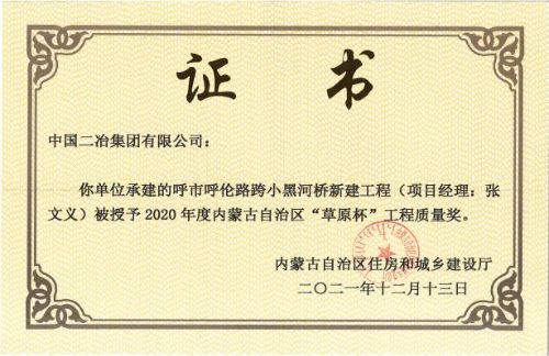 近日,內蒙古自治區住房和城鄉建設廳官網公示2020年度內蒙古自治區“草原杯”工程質量獎名單,中國二冶內蒙古分公司承建的內蒙古自治區綜合疾病預防與控制中心項目、呼市呼倫路跨小黑河橋同時榮獲2020年度第二批內蒙古自治區“草原杯”工程質量獎。