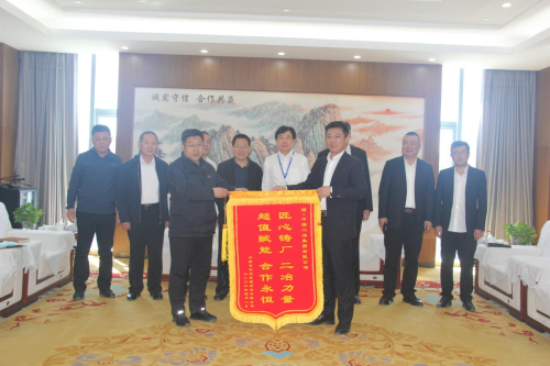 會上,楊樹仁一行代表默夙集團向中國二冶贈送錦旗,對中國二冶在默銳一期項目建設(shè)中,突破工期緊任務重等不利因素,高標準嚴要求,精益求精匠心鑄企,披荊斬棘奉獻二冶力量,優(yōu)質(zhì)快速完成工程建設(shè)任務,實現(xiàn)雙方互惠互利,給予高度肯定和表揚。會前,雙方共同參觀了中國二冶榮譽展廳。
