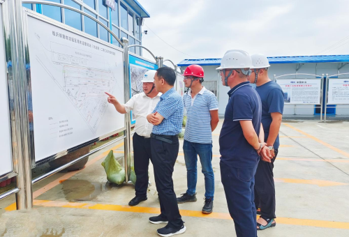 聶世濤一行首先深入項目施工現場,對工程進度、產值完成及項目推進過程中存在困難進行重點調研,分別查看了施工總體布置平面圖與項目管理規劃圖。在聽取了項目經理就項目主要節點工期目標、項目進度情況的匯報后,聶世濤對項目當前安全管理、工程進度等方面的工作給予充分肯定。他指出,要把安全生產擺在重要位置,繃緊弦、不松勁,在確保安全質量的前提下,重點關注現場文明施工,施工現場要建立文明施工責任制,劃分區域,明確管理負責人,實行掛牌制,做到現場清潔整齊,著重做好現場的場容管理工作,全力加快推進項目施工建設進度。