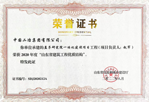 中國二冶兩項目榮獲“山東省建筑工程優質結構”獎
