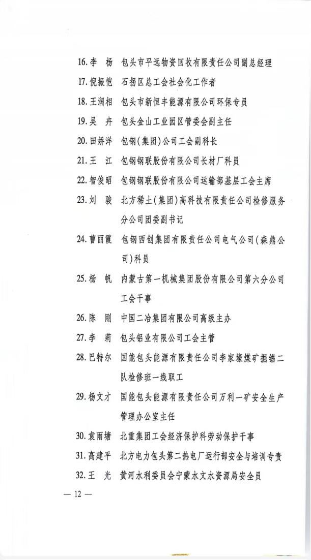 近日,包頭市總工會召開2022年度“安康杯”競賽總結暨經驗交流會,中國二冶路橋分公司榮獲包頭市“安康杯”競賽2022年度優勝單位稱號,中國二冶鋼構分公司榮獲優勝班組稱號,公司工會陳剛榮獲先進個人。