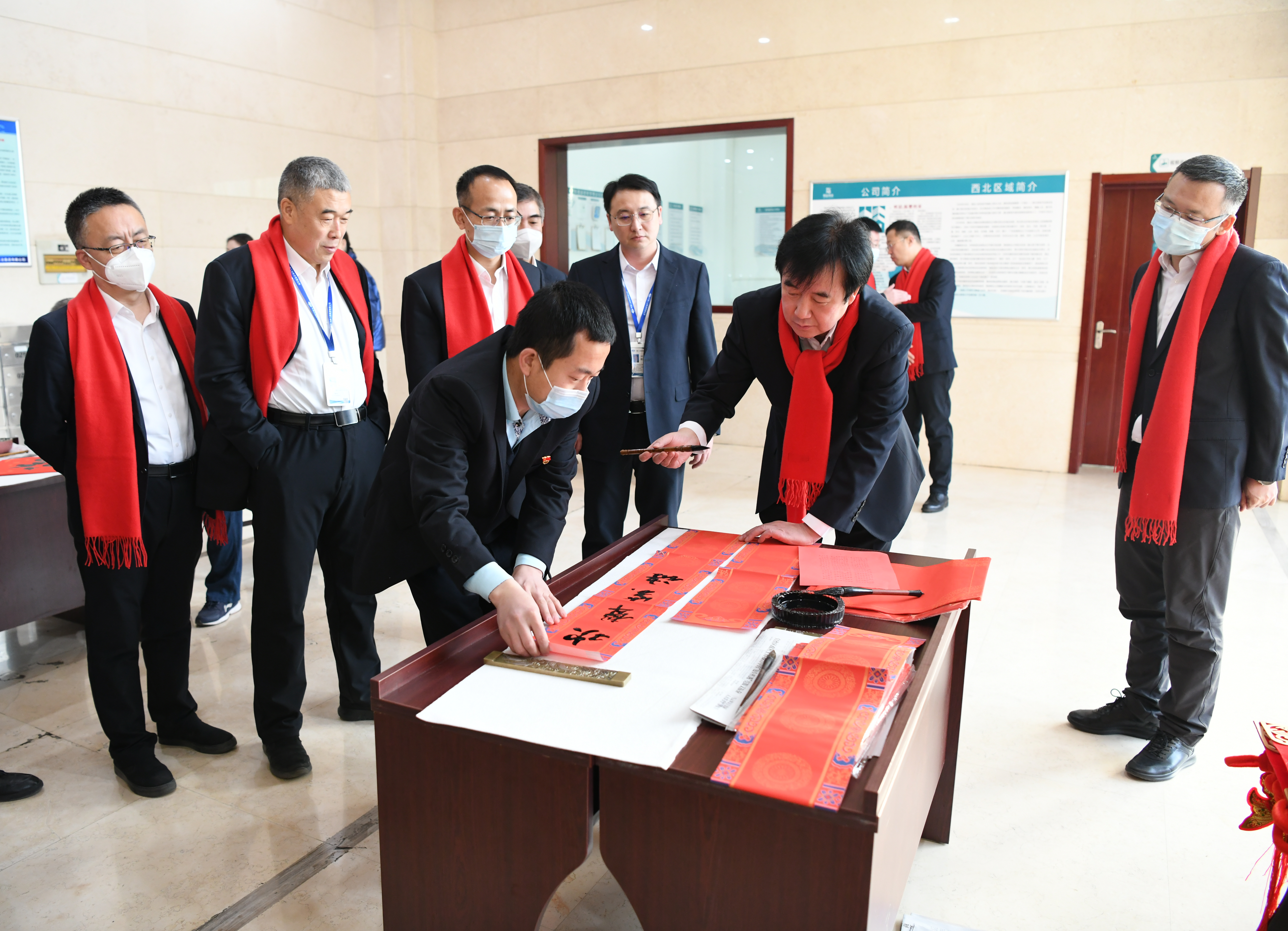 無聯不成春,有聯春更濃。此次活動邀請到了公司書法愛好者為職工們寫春聯,現場墨香四溢,書法家筆酣墨飽、筆走龍蛇,頃刻間,一幅幅寓意美好、年味十足的大紅春聯和“?!弊周S然紙上。公司黨委書記、董事長徐永鋒也在現場揮毫潑墨,送出了對職工及家屬美好的祝愿和新年祝福,讓前來“請福”的員工們贊不絕口。