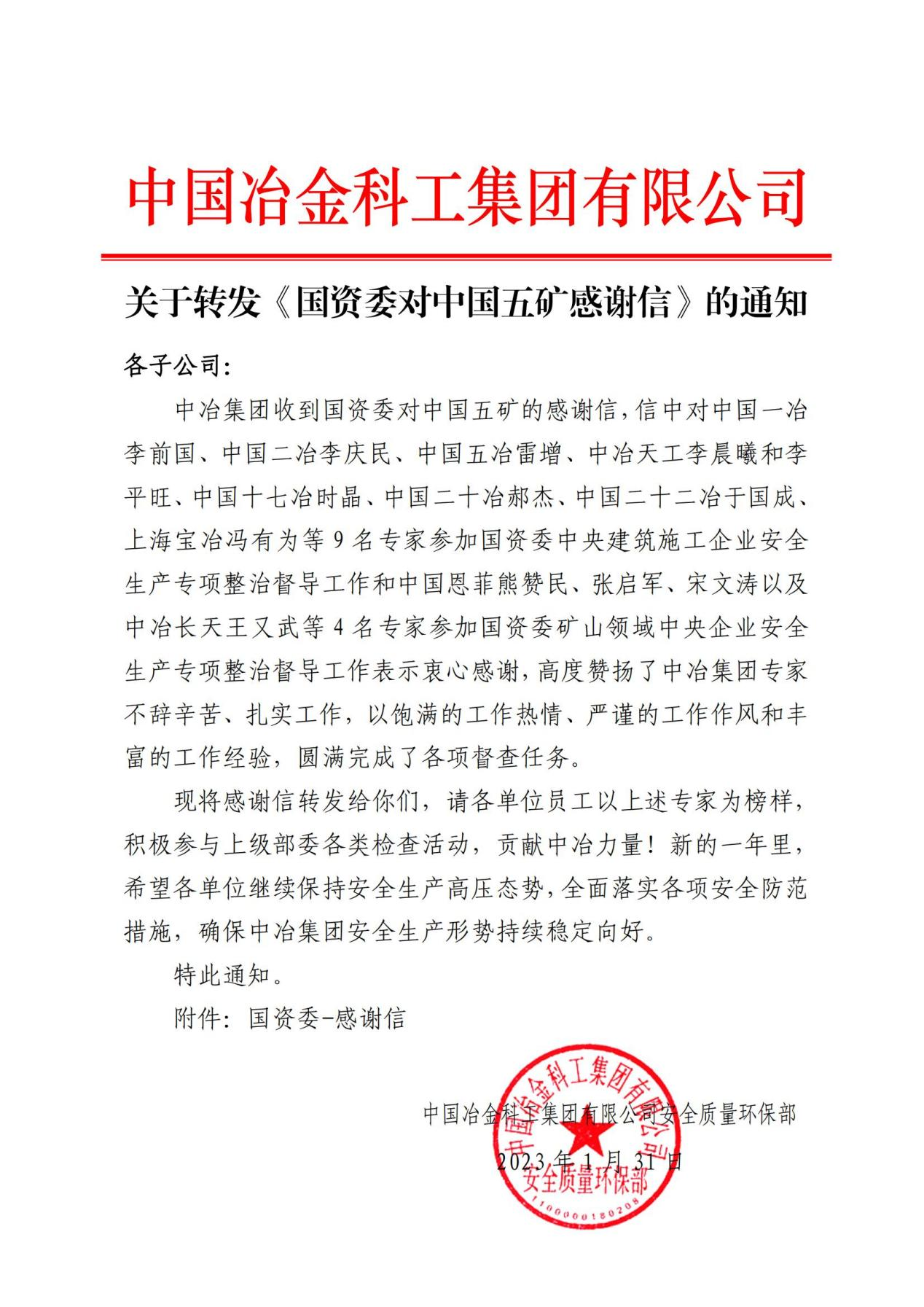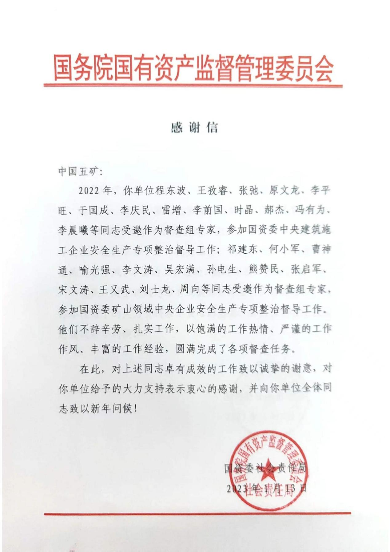 2月5日,中國二冶收到中冶集團轉發由國資委發給中國五礦的感謝信,感謝信對包括中國二冶內蒙古分公司安全總監李慶民在內的9名中冶專家參加國資委中央建筑施工企業安全生產專項整治督導工作表示衷心感謝,對中冶集團專家不辭辛苦、扎實工作,以飽滿的工作熱情、嚴謹的工作作風和豐富的工作經驗,圓滿完成了各項督查任務表示高度贊揚。