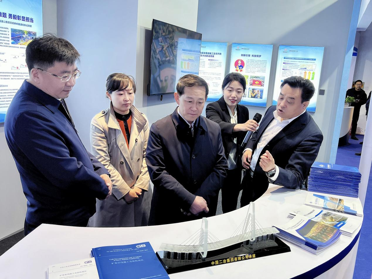 展會期間,內蒙古自治區黨委常委、包頭市委書記丁繡峰,包頭市委副書記、市長張銳等領導,來到中國二冶展臺前,認真觀看蘭州市西固柴家峽黃河大橋實物模型,詳細了解了該工程施工工藝和技術成果,對中國二冶的職工創新工作給予充分肯定。