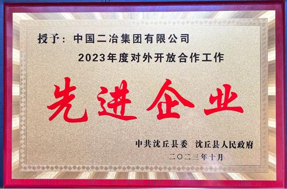 10月21日,河南省沈丘縣召開對外開放合作大會,對11家參與沈丘縣基礎設施建設做出突出貢獻的企業進行表彰,中國二冶榮獲沈丘縣先進企業稱號。