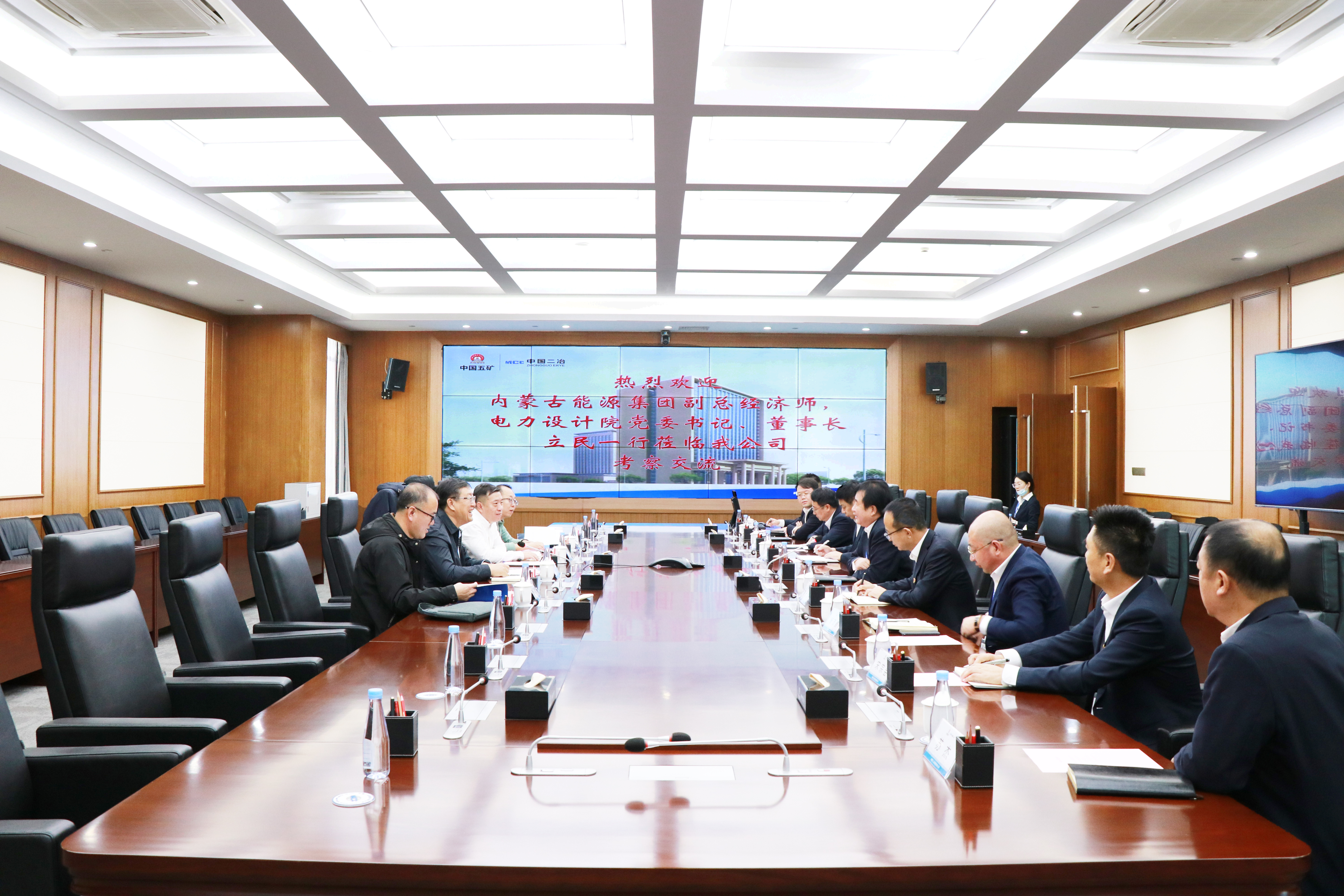 徐永鋒對立民一行的到訪表示歡迎,向立民一行介紹了中國二冶的歷史沿革和企業概況。他表示,中國二冶堅定不移走高質量發展之路,近年來發展勢頭迅猛,成為內蒙古自治區建筑業龍頭企業。目前,公司深耕內蒙古自治區本土市場,在內蒙地區建設了多個具有代表性的新能源項目,正在新能源領域謀求更大發展。希望能夠與內蒙古能源集團電力設計院深度合作,更好地滿足政府建設需要,協力同行,合作共贏。