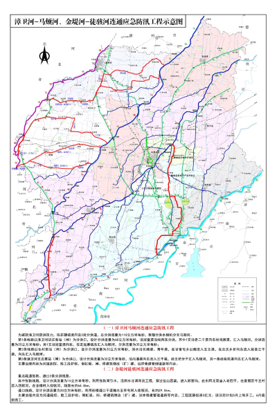 項目主要包含聊城市漳衛河馬頰河引調水工程初步設計及應急防汛部分施工,建設渠道清淤疏浚、岸坡修整及入馬頰河回水段筑堤,總清淤疏浚長232.69km,回水段筑堤長2.405km,擬定冠縣兩條、臨清市一條共計上中下三條調水線,通過汛前打通漳衛河馬頰河分洪通道,以保證漳衛河防洪安全。